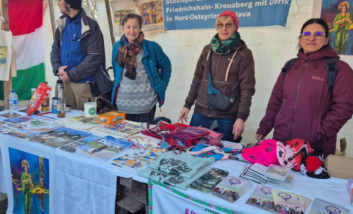 Der Städtepartnerschaftsverein hat sich mit einem Infostand und einer Rede des Co-Vorsitzenden Janosch Tries an