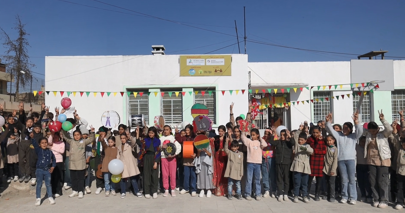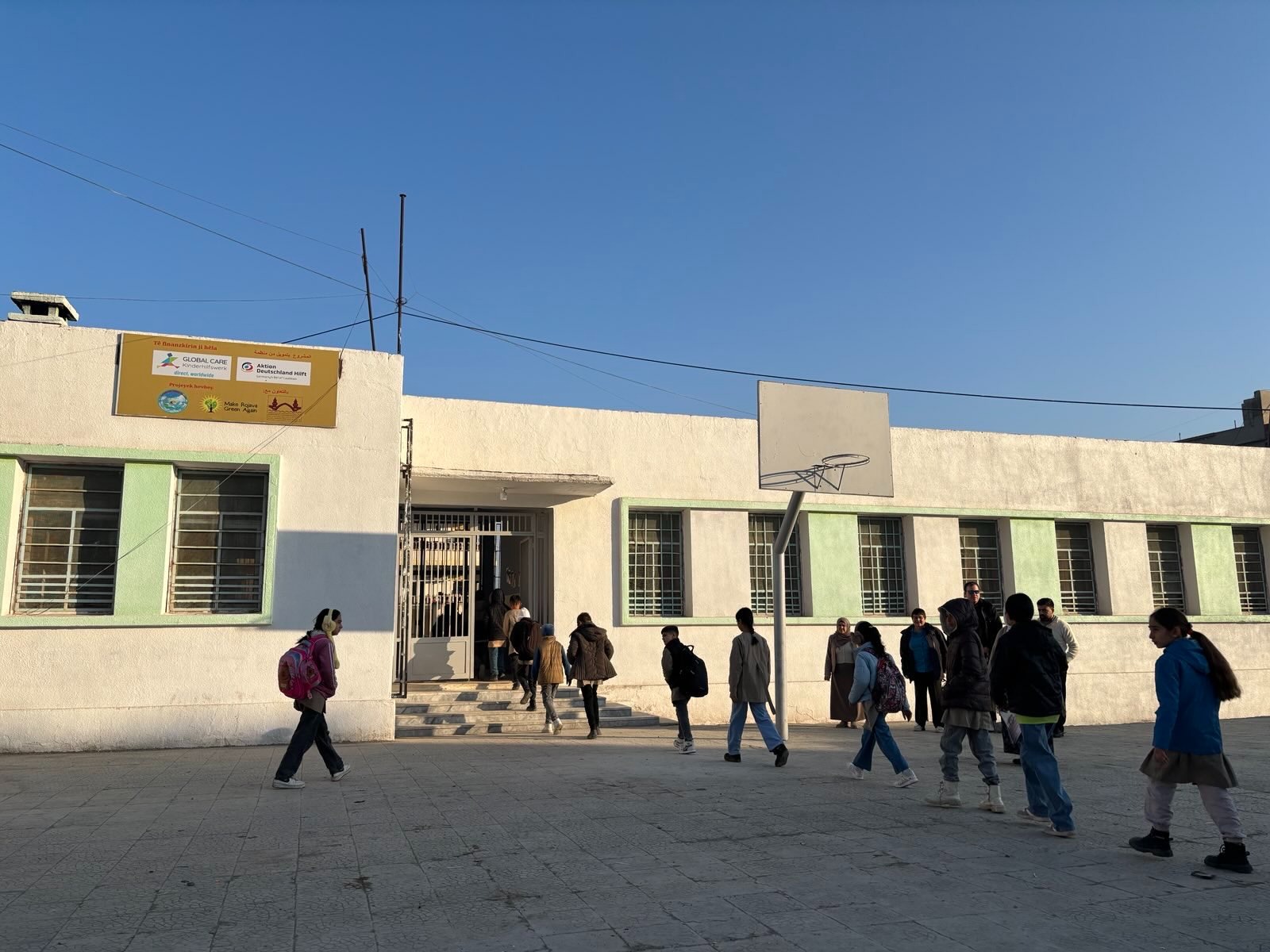 Im Januar 2026 hatten islamistische Milizen der syrischen Übergangsregierung Angriffe auf das Gebiet der Selbstverwaltung begonnen. Nach einer Reihe von Massakern an kurdischen Zivilisten setzte ein grosse Fluchtbewegung von Westen nach Osten ein. So flohen auch viele nach Dêrik, die östlichste Stadt Syriens. Diese Geflüchteten mussten von der Stadtverwaltung irgendwo untergebracht und versorgt werden. Neben leerstehenden Häusern und Moscheen wurden dafür natürlich auch Schulen, wie die gerade erst renovierte Kahder-Daoud-Schule bereit gestellt. Seitdem ruht dort der Unterrichtsbetrieb.