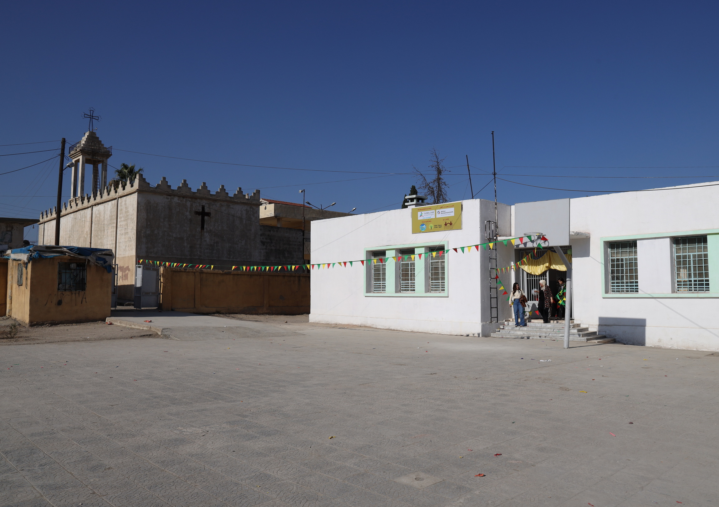 Die Khader-Daoud-Schule liegt im Zentrum der Stadt Dêrik direkt neben der chaldäischen Kirche und gehört zu den ältesten Schulen der Stadt. Sie wurde 2025, dem Jahr der Renovierung, von 216 Schüler*innen besucht.